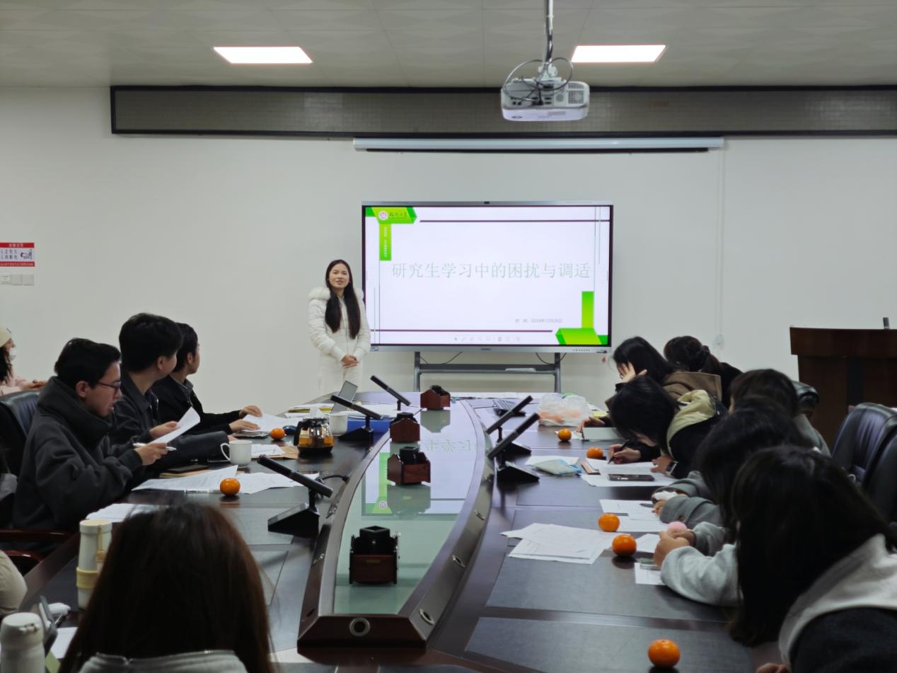 研究生阶段是学术压力和生活压力的双重挑战期,许多同学在论文写作、科研任务和生活琐事的压力下,会感到焦虑、迷茫,甚至产生心理健康问题。心理委员唐晓玲针对学术论文写作中的压力管理进行讲解,她指出许多同学在面对论文写作时,往往容易陷入过度焦虑和自我怀疑的状态,而这些情绪会直接影响科研工作的进展。唐晓玲建议同学们要学会合理规划时间,保持积极乐观的心态,在科研过程中遇到困难时要及时寻求帮助,不要过度承担压力。此外,唐晓玲还分享了一些有效的情绪管理技巧,如冥想放松、运动减压等,帮助同学们保持良好的心理状态。
